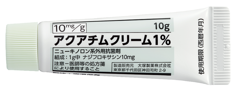 アクアチムクリーム(一般名:ナジフロキサシン)1日2回 洗顔後に患部に適量を塗布