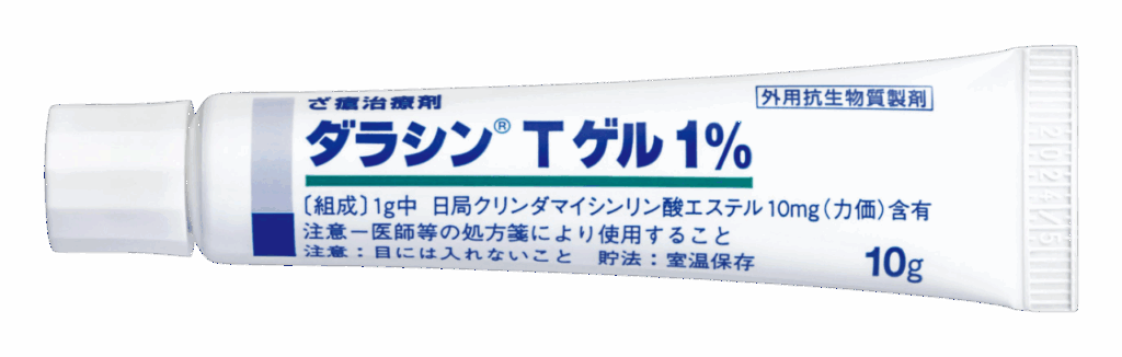 ダラシンゲル(一般名:クリンダマイシン) 1日2回 洗顔後に患部に適量を塗布